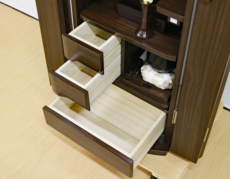 「ウォールナットの重厚美」と「広々とした厨子」が、祈りを盤石にする。