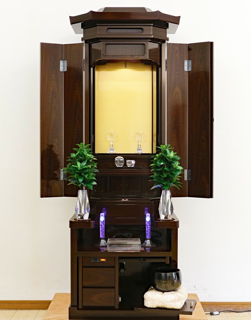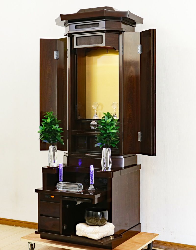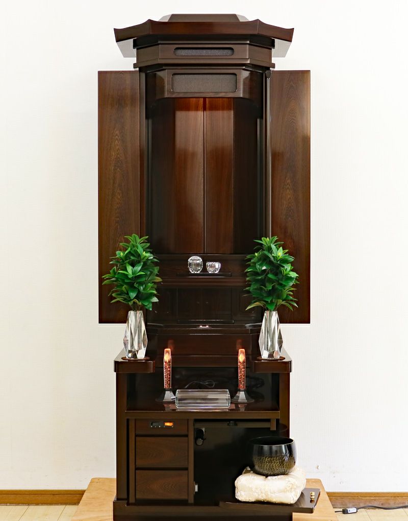 代々にわたって愛される普遍的な伝統デザイン。充実した収納スペースが仏具をスッキリ整理し、一点集中の祈りをサポート。一家の勝利の歴史を刻むのにふさわしい造りです。