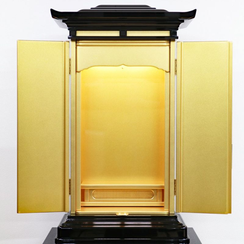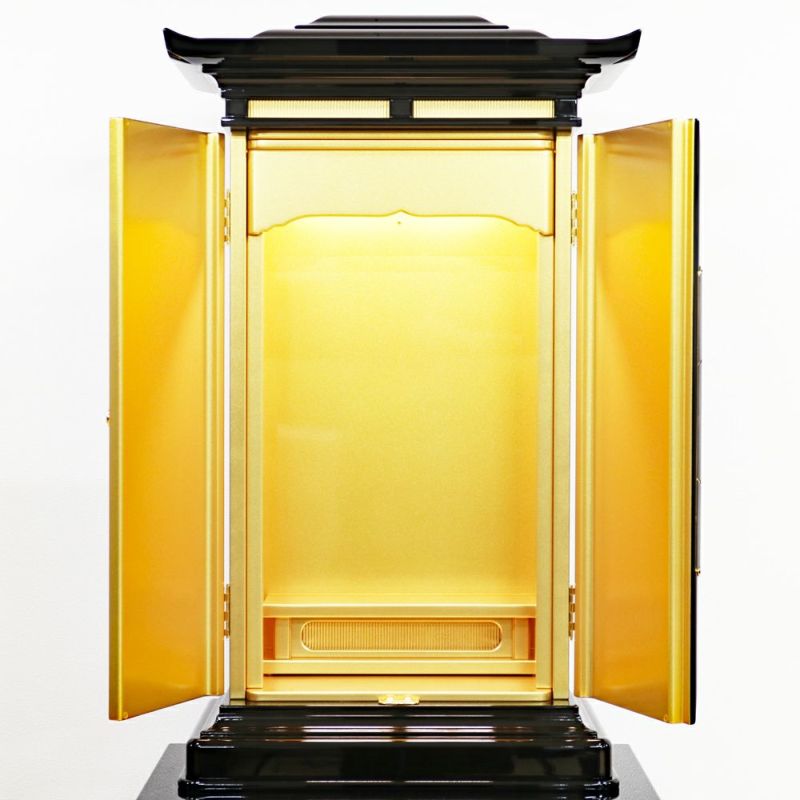 お厨子を開くと美しくクリア金色塗装の厨子板がご本尊様をさらに荘厳にしてくれます。