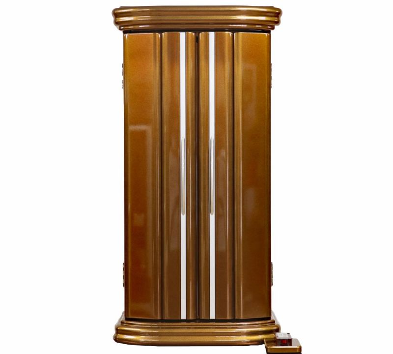 国産唯一の常住ご本尊ご安置可ミニ仏壇 SGIメンバーに大人気の純国産のブラウンメタリック塗装が全体に施された、高級感あふれるデザインのいす付き仏壇となります。こちらの商品は、イスをご利用の方に最適な設計をしたお仏壇となっております。軸回転式強化ガラス厨子を採用しておりますので、小さなお子さんがいる家庭やペットを飼っているご家庭に人気の商品です。上質仕上げ:製造工程・塗装工程で手間をかけて製造したものになります。