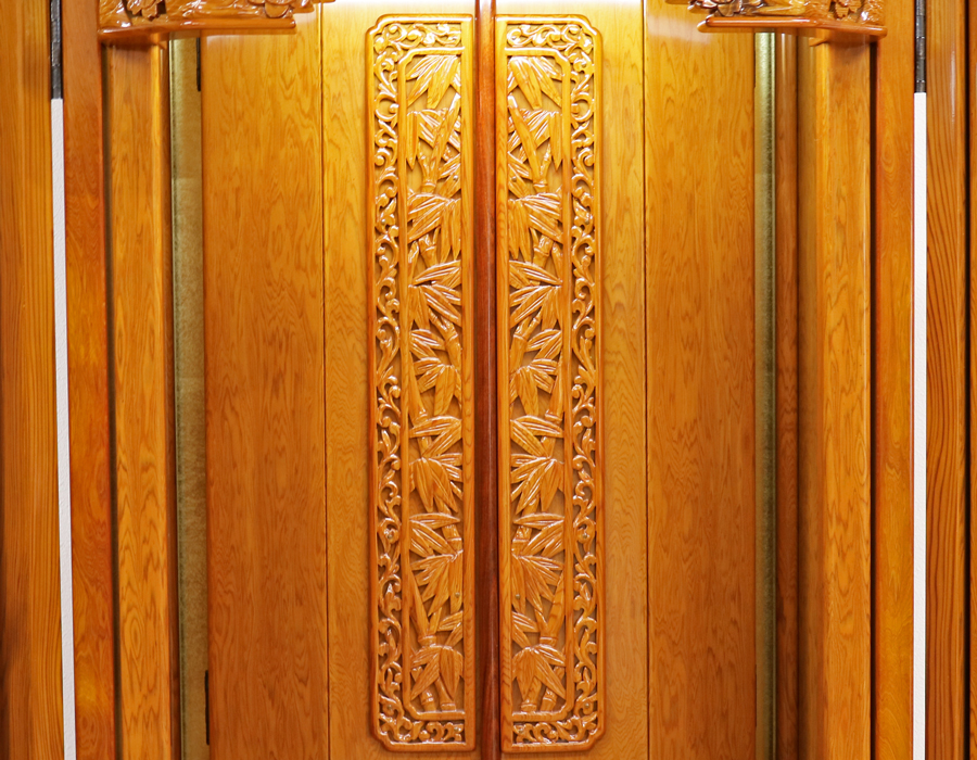 厨子扉には、職人こだわりの竹の彫が施されております。