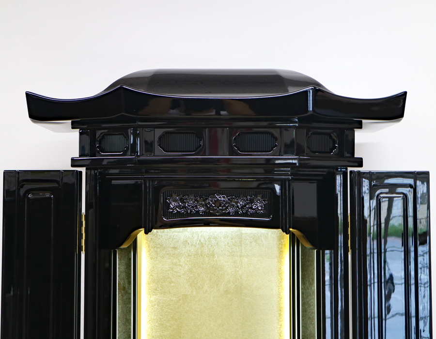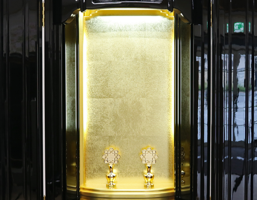 お厨子上部だけでなく、両脇にもLED照明がついている彩光厨子を採用しているので、御本尊様を明るく拝すことができます。