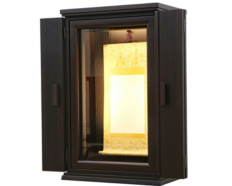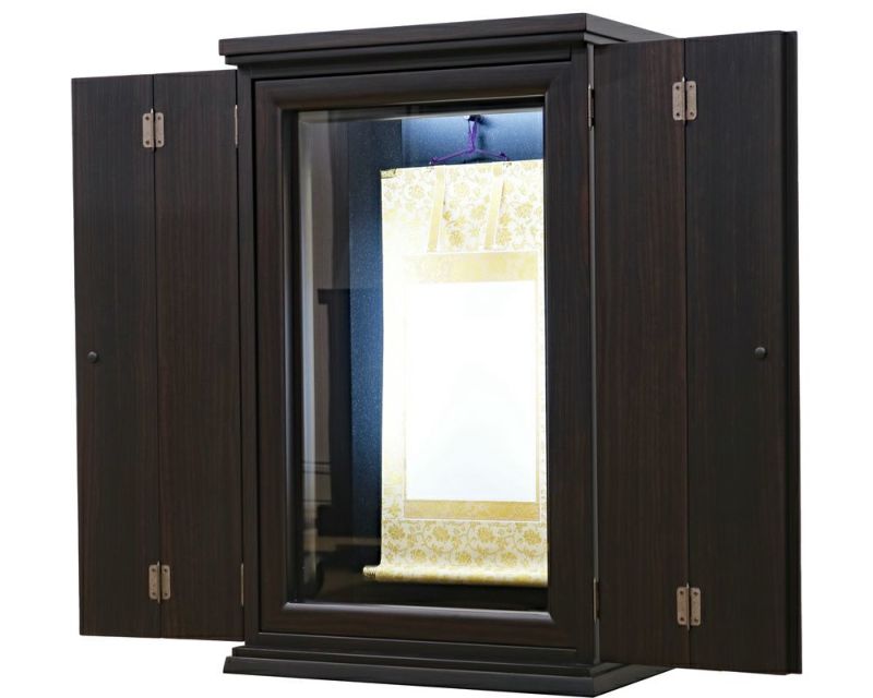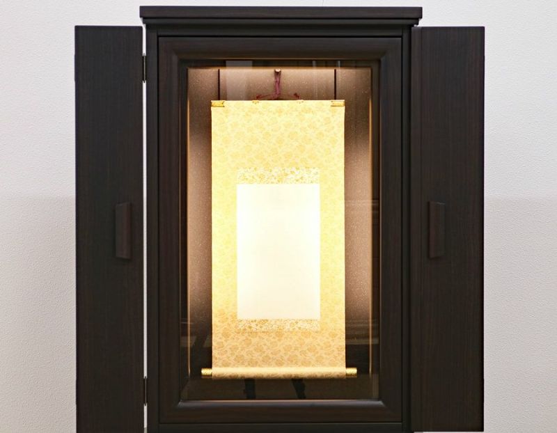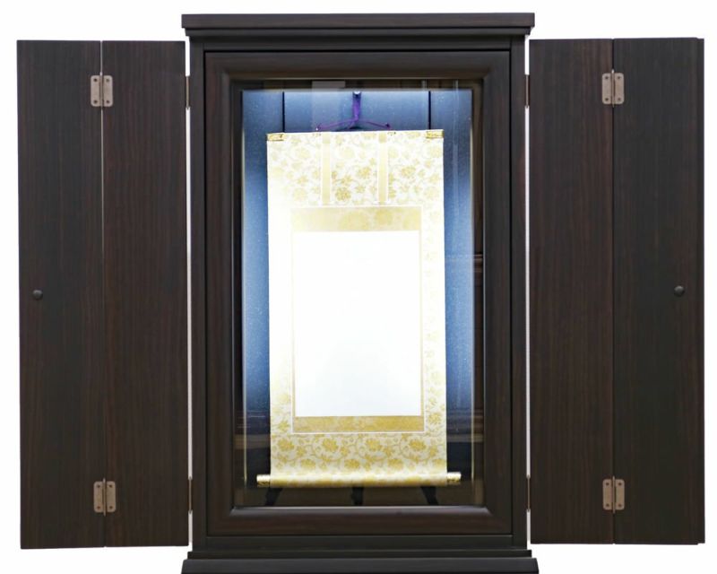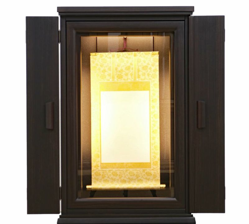 お客様が「こんなにシンプルな仏壇は初めて」と語る空間。最高級素材「黒檀」が持つ深みのある**「重厚感」**が、内部の「黒い宇宙」と一体化します。