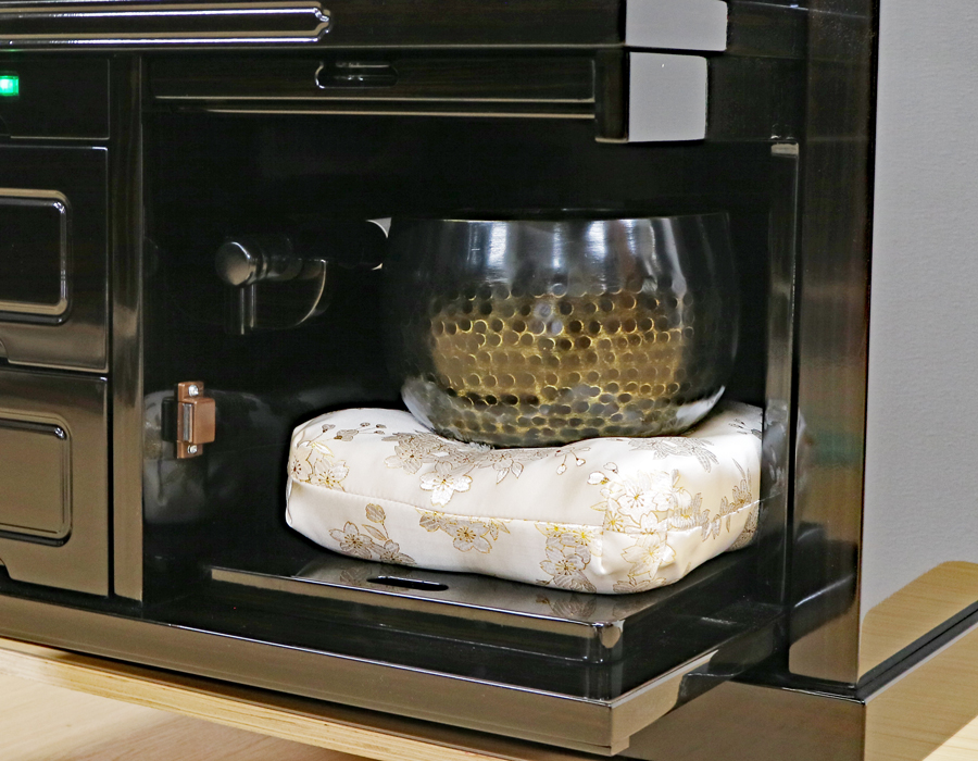 お仏壇に合わせた高級手打ちリンをお付けいたします。