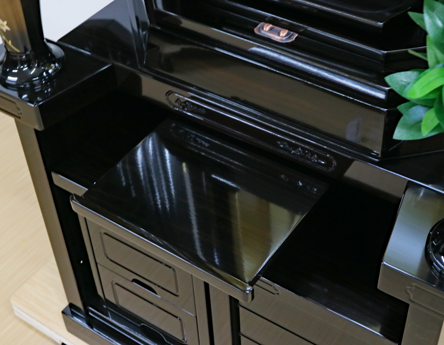 おシキミの花瓶の台は横にスライドしますので、勤行の時にはご本尊様がよりすっきりとみることができます。