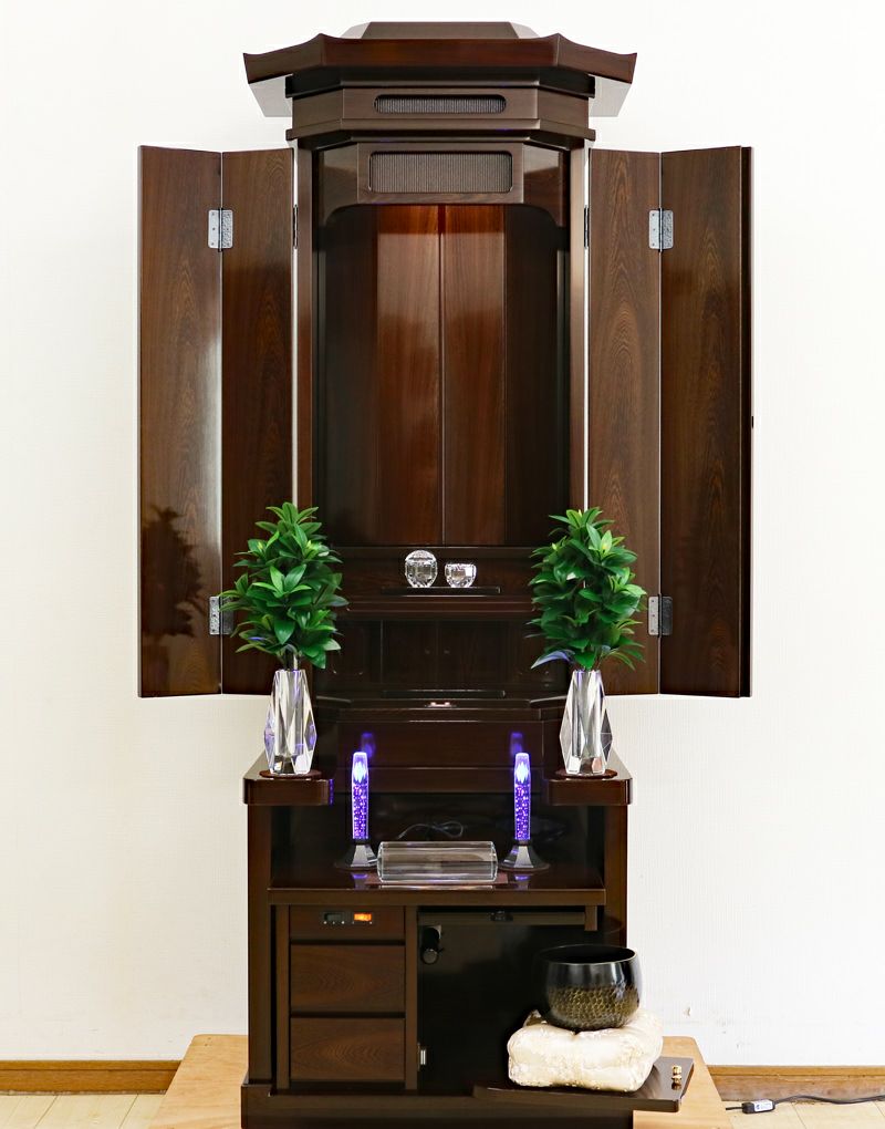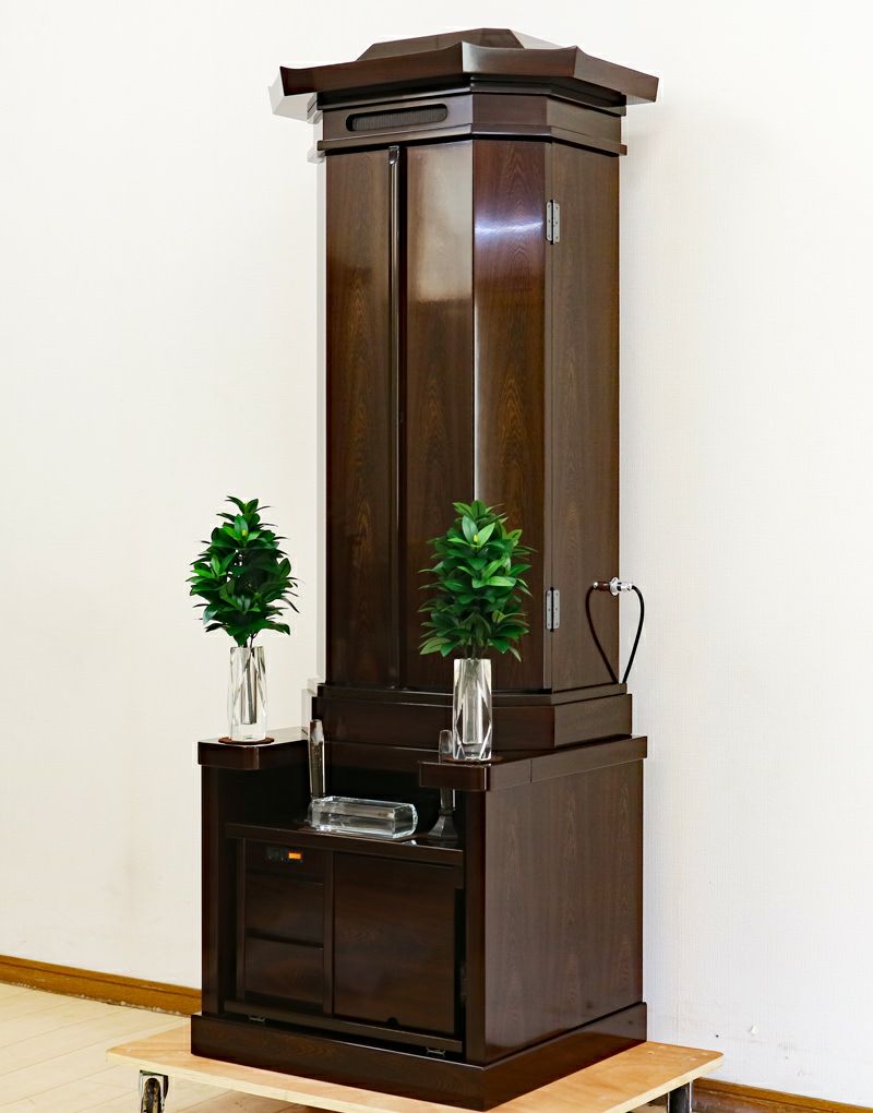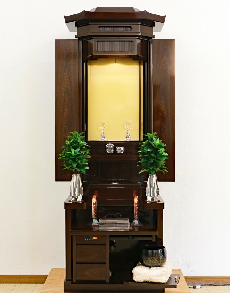 代々にわたって愛される普遍的な伝統デザイン。充実した収納スペースが仏具をスッキリ整理し、一点集中の祈りをサポート。一家の勝利の歴史を刻むのにふさわしい造りです。