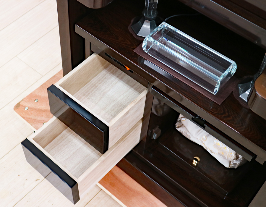 収納経机に2か所引き出しがございます。