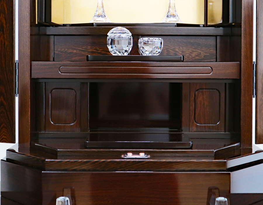 鉄刀木のシック木目が特徴の仏壇です。