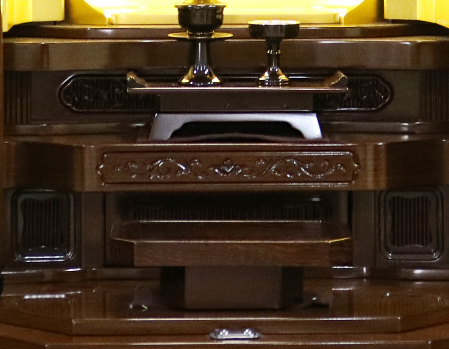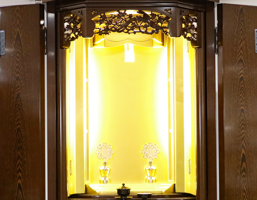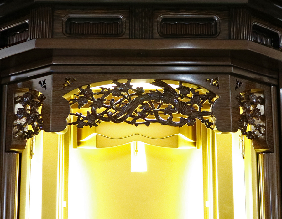 お厨子の上部だけでなく、両脇にもLED照明が設置されている、彩光厨子を採用しておりますので、ご本尊様を明るく拝すことが出来ます。