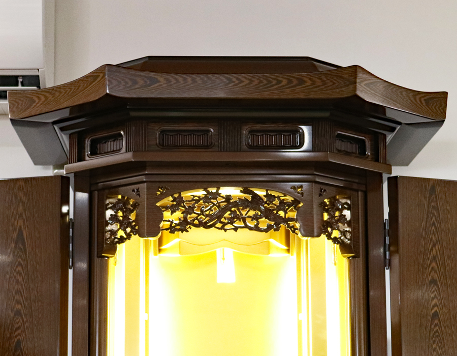 お仏壇の印象を大きく決める屋根です。屋根側面部分は風格ある印象に仕上げました。