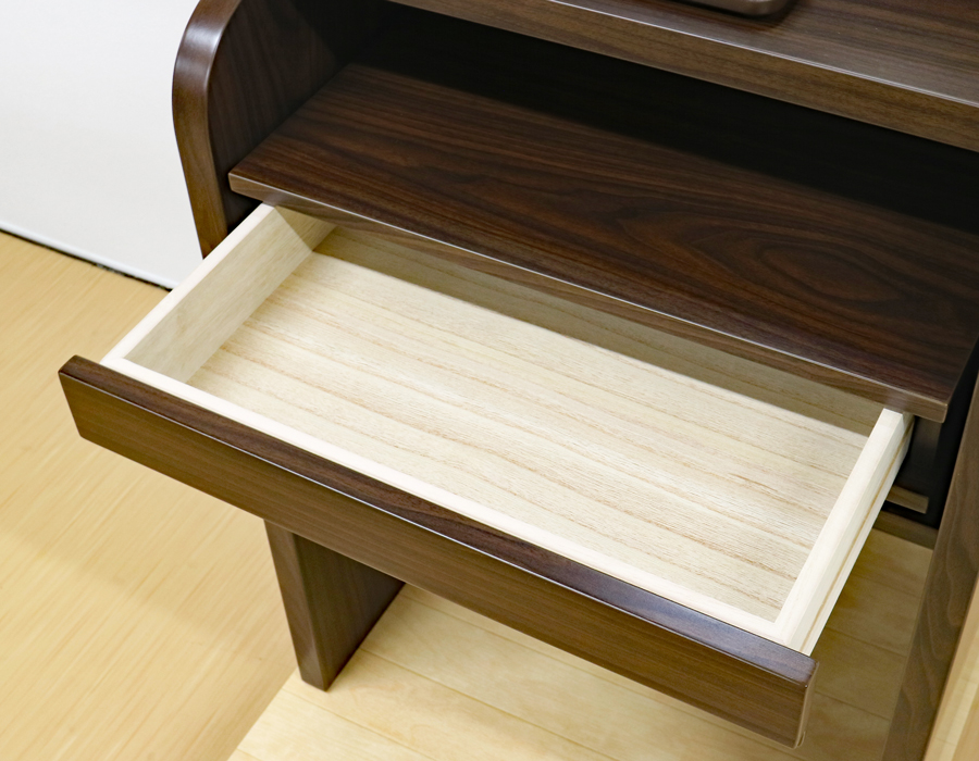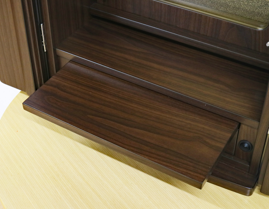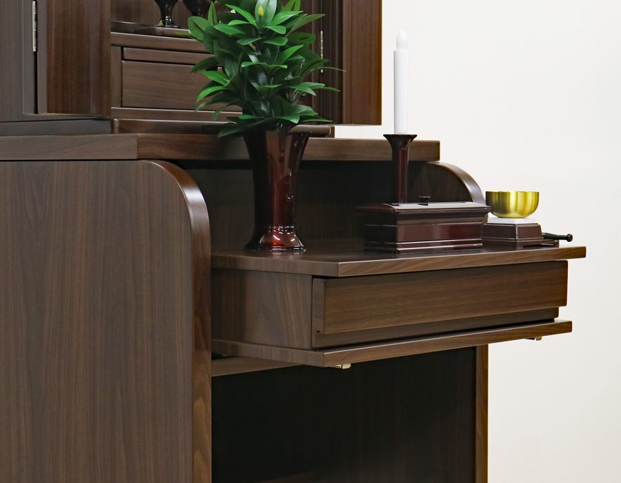 仏壇本体に膳引きがあります。自分だけのご祈念帖をそっと置ける場所でもあります。