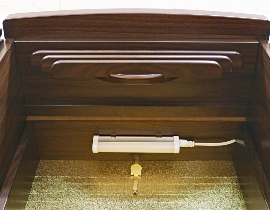 アクリル厨子カバーを外すと上部にLED照明が設置されております。