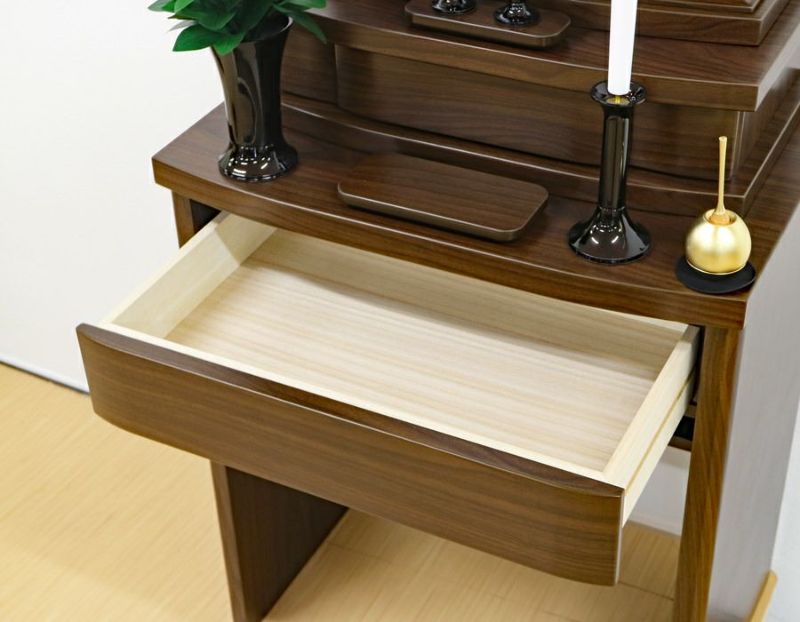お厨子部分の重心を前に持っていくことにより、薄型でも倒れにくい設計にすることが可能となりました。