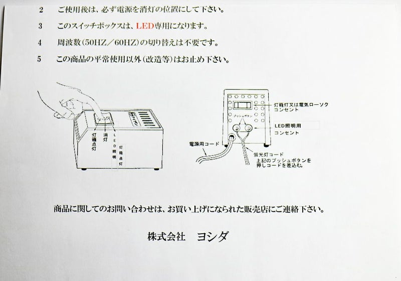 スイッチボックスのボタンを押しますとLED照明が点灯いたします。