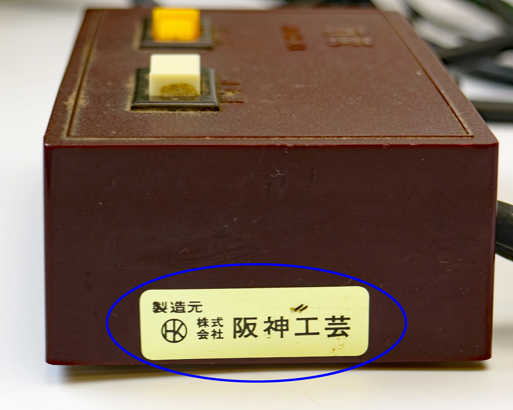 上記お写真の青丸の表記(阪神工芸製)があり、