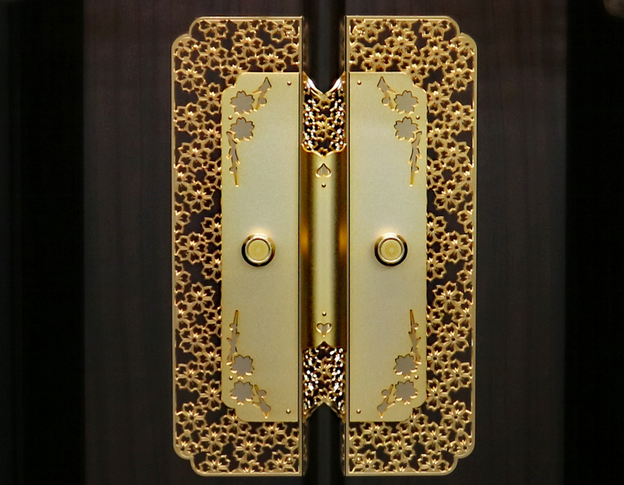 内扉の金具はこだわりのデザインになっております。 職人が手作りで作成しております。