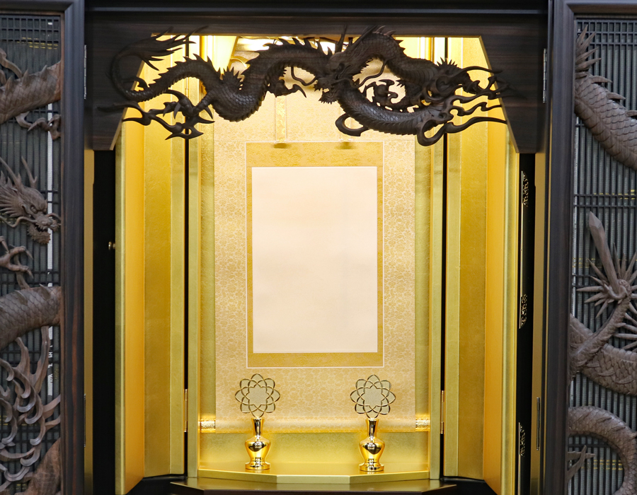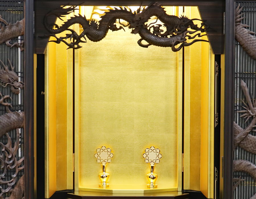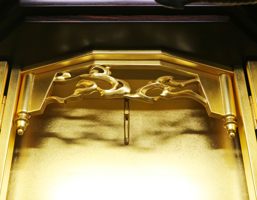 お厨子は本金箔厨子となります。本金箔と金色塗装では輝きが違うのは一目瞭然です。