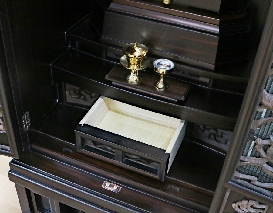 厨子中は格子の付いた格式のあるデザインとなっております。