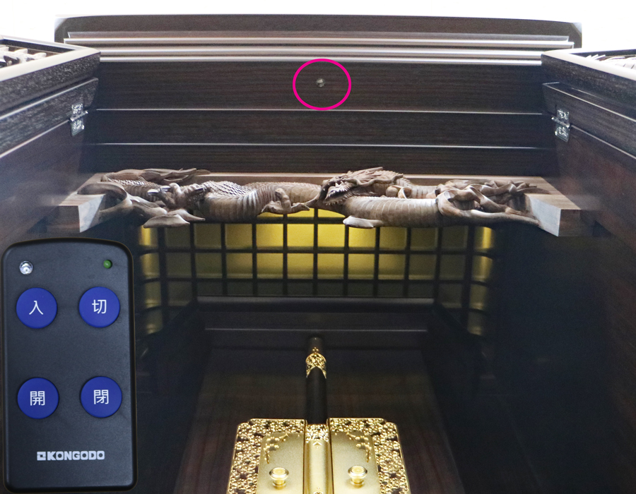 上記お写真の赤丸の箇所にリモコン受信機がございます。