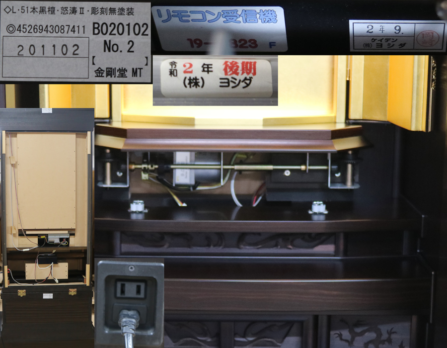 仏壇背面に差し込み式の耐震金具が設置されております。