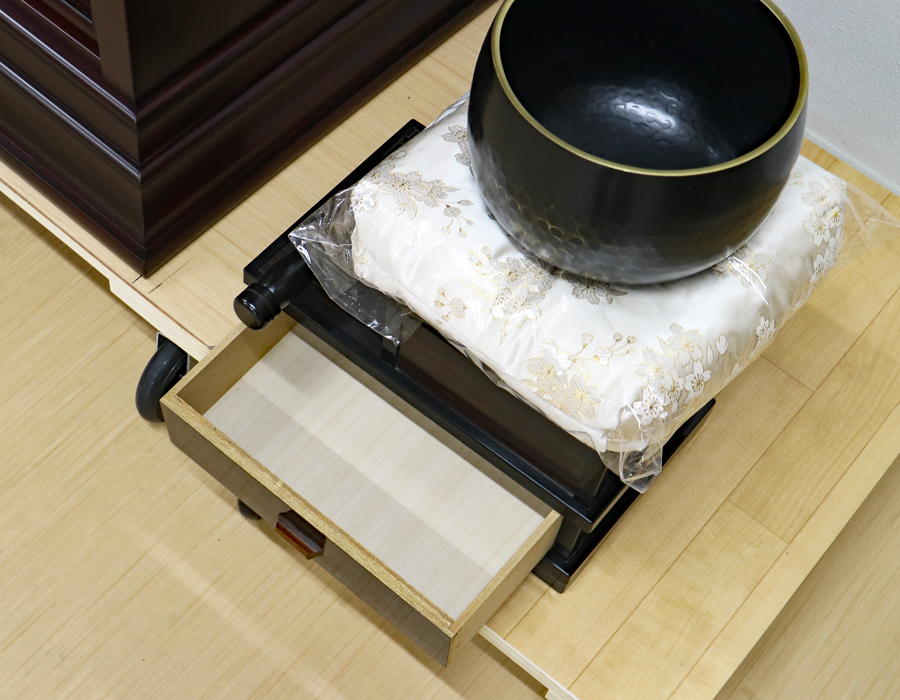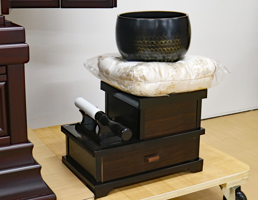 仏具付き選択の場合、上記お写真の6寸リンセットが付属いたします。