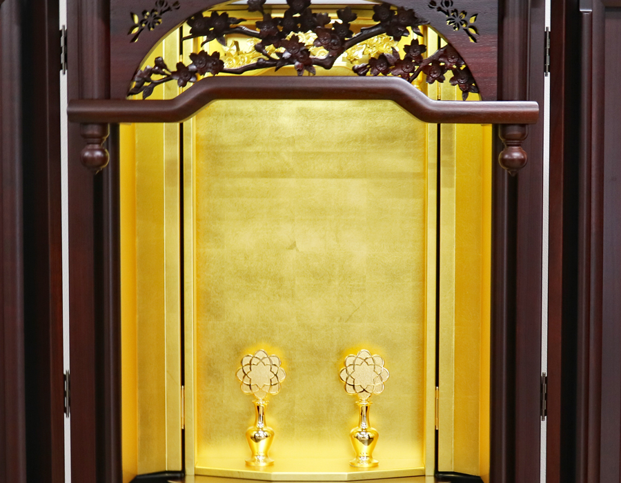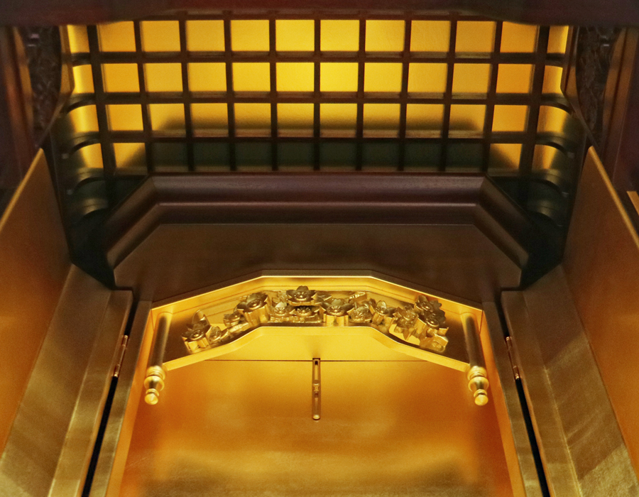 お厨子は本金箔厨子となります。本金箔と金色塗装では輝きが違うのは一目瞭然です。