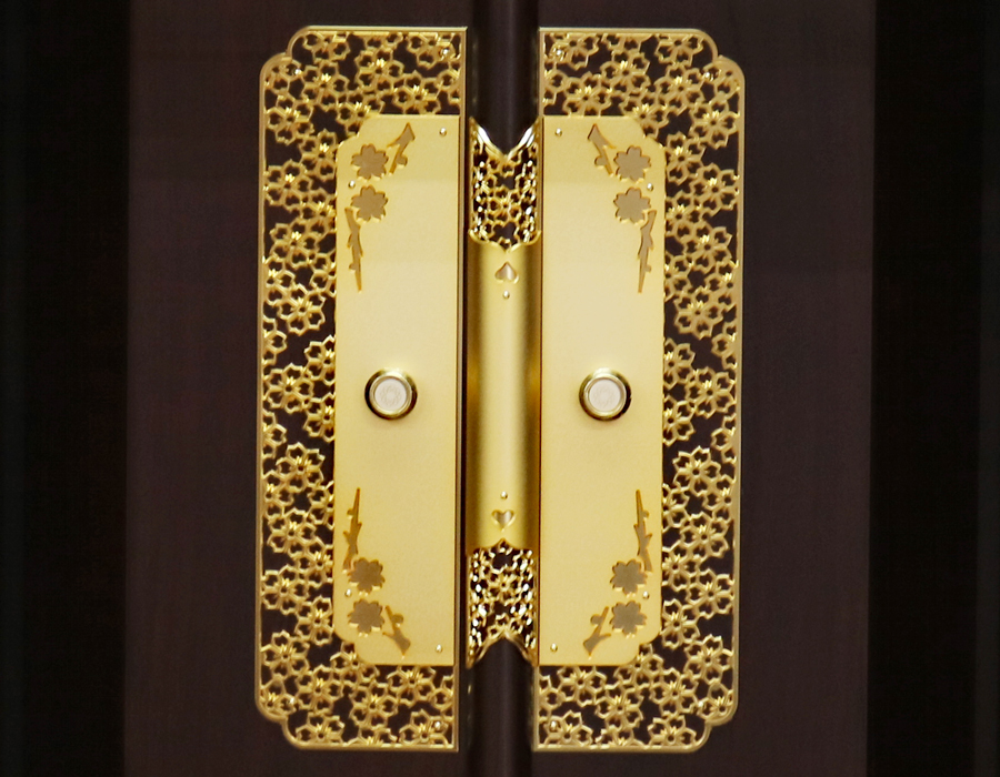 内扉の金具はこだわりのデザインになっております。 職人が手作りで作成しております。