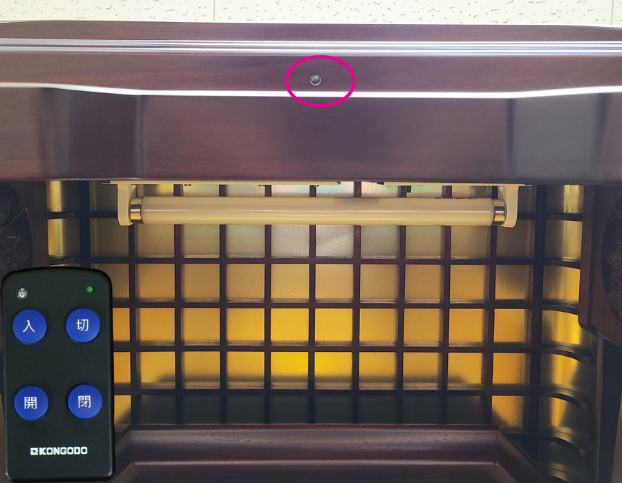 上記お写真の赤丸の箇所にリモコン受信機がございます。