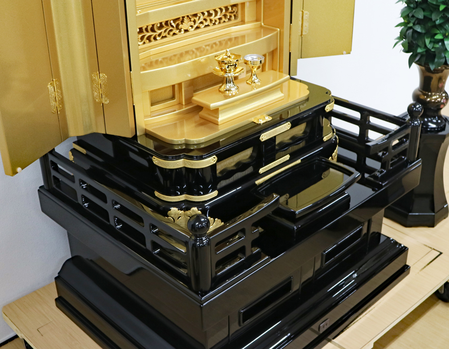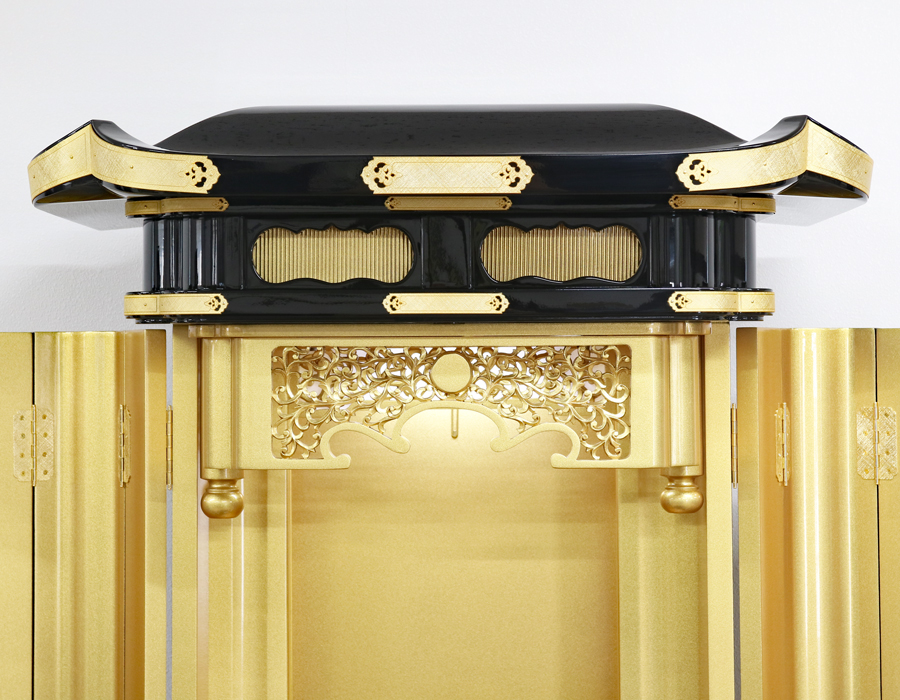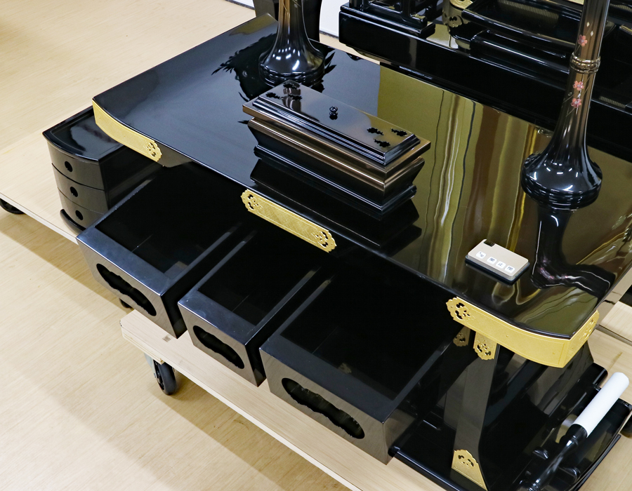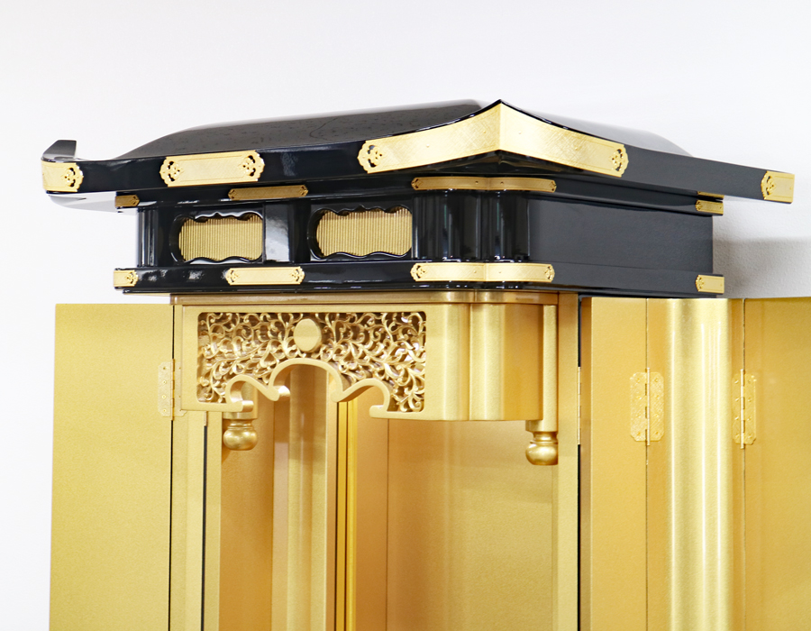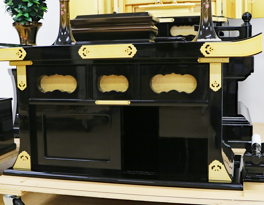 黒塗りのお仏壇なので、金色の金具がよく映えます。