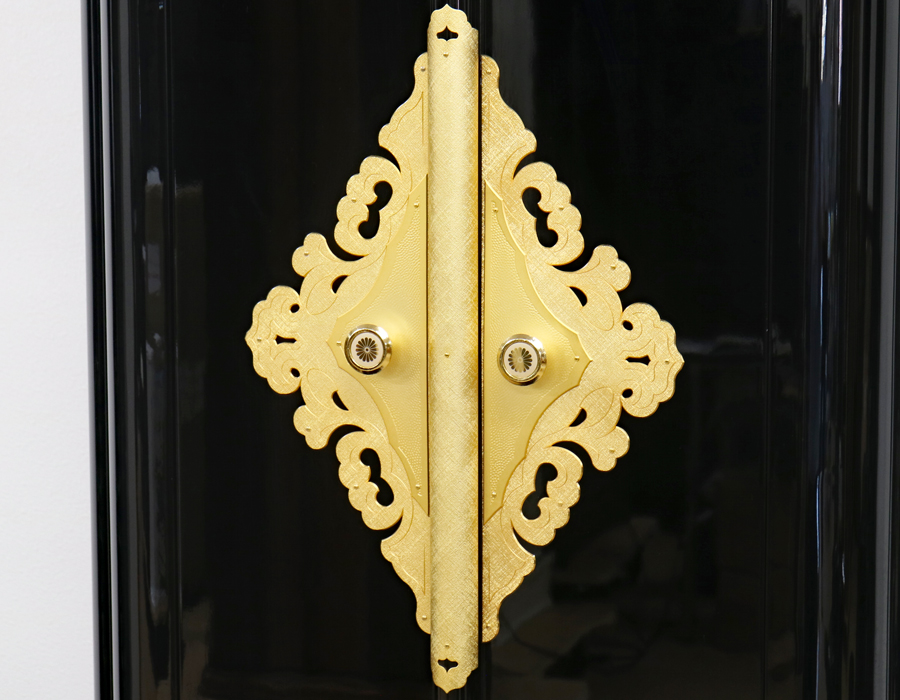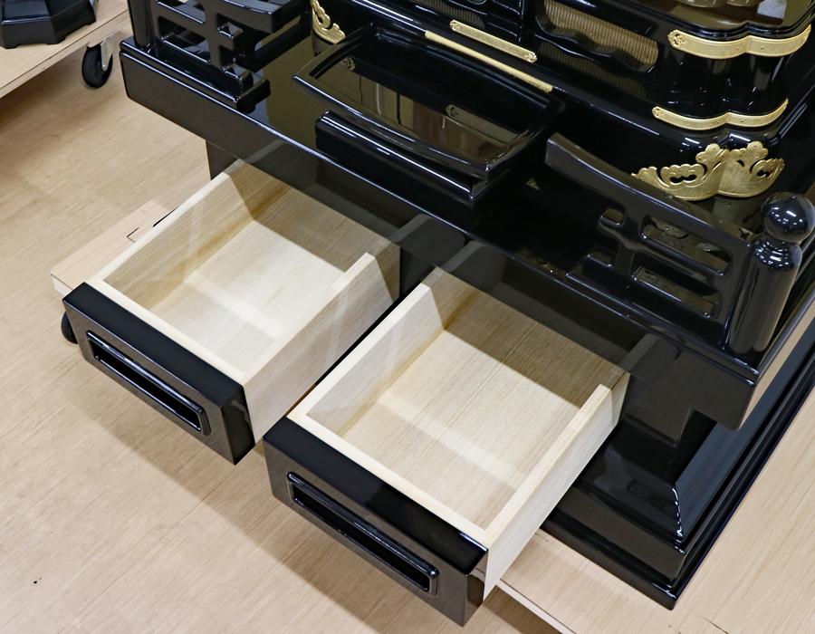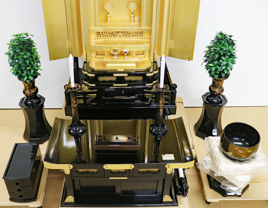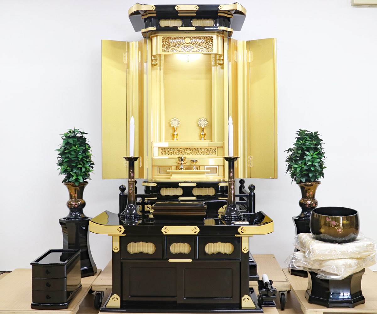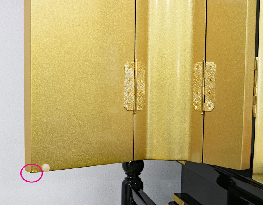 黒塗りのお仏壇なので、金色の金具がよく映えます。