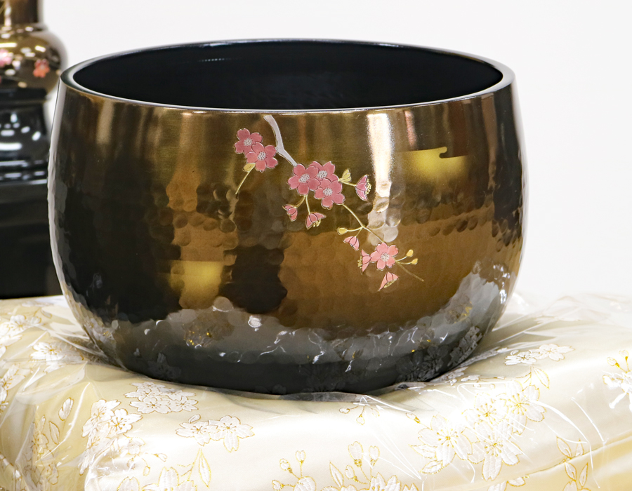 口径24.5cmの8寸サイズのさくら彫金入り本格本手打ちリンが付属いたします。
