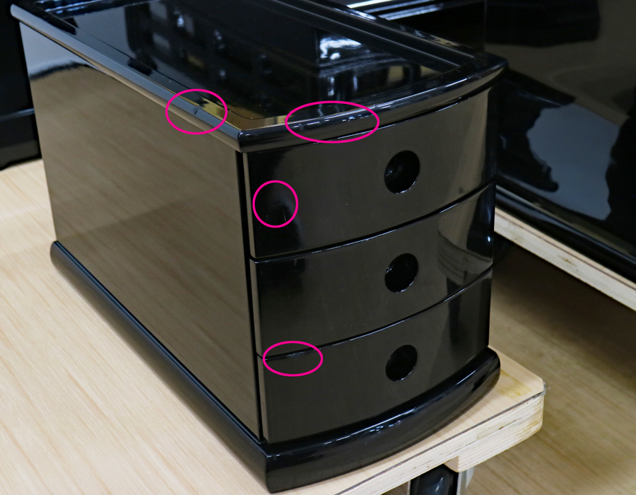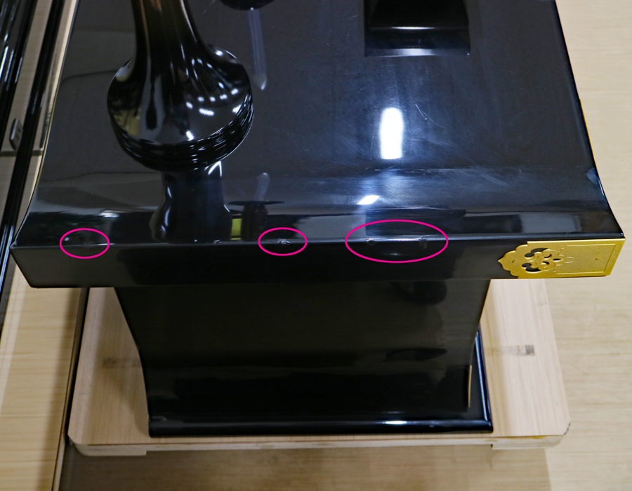 金色の金具が付いた部分に塗装のゆがみがあります。 ご理解いただける方にお求め頂きたいと存じます。