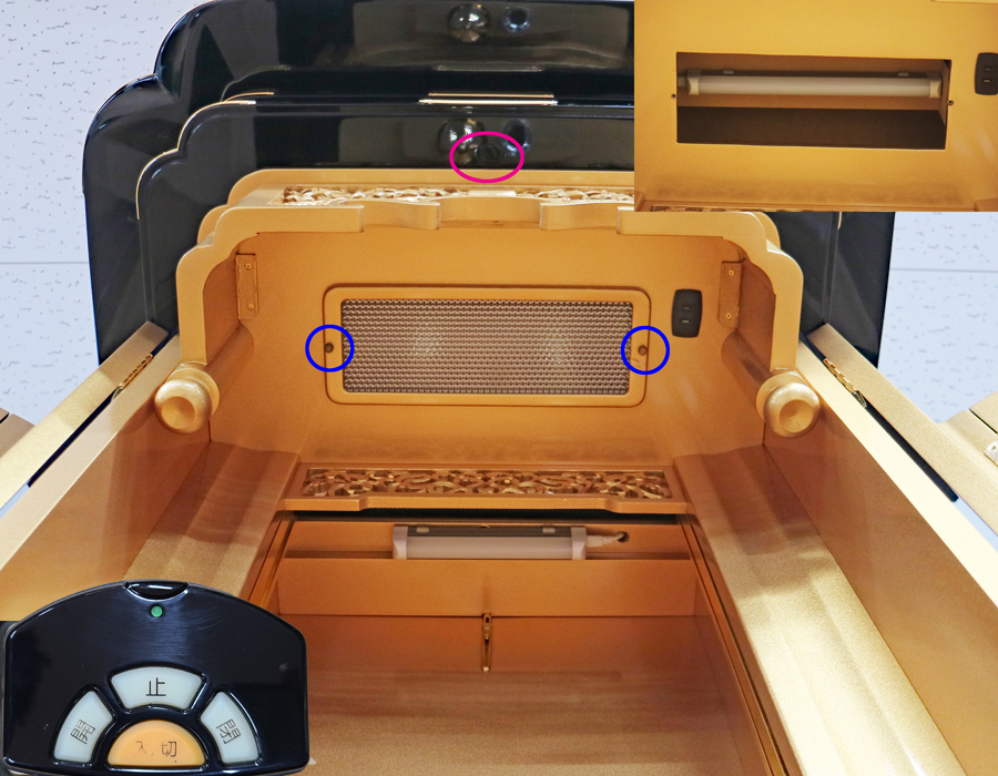 仏壇内上部に2ヵ所LED照明が設置されております。