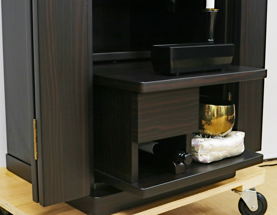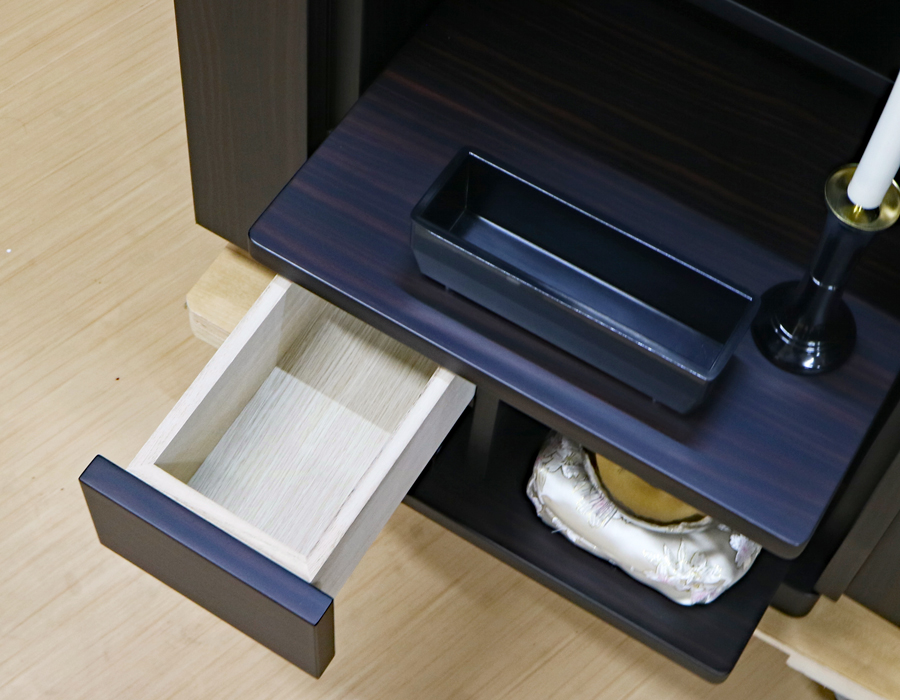 収納経机に引き出しがございます。