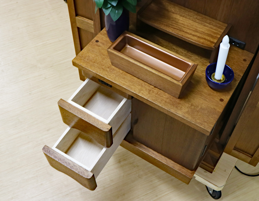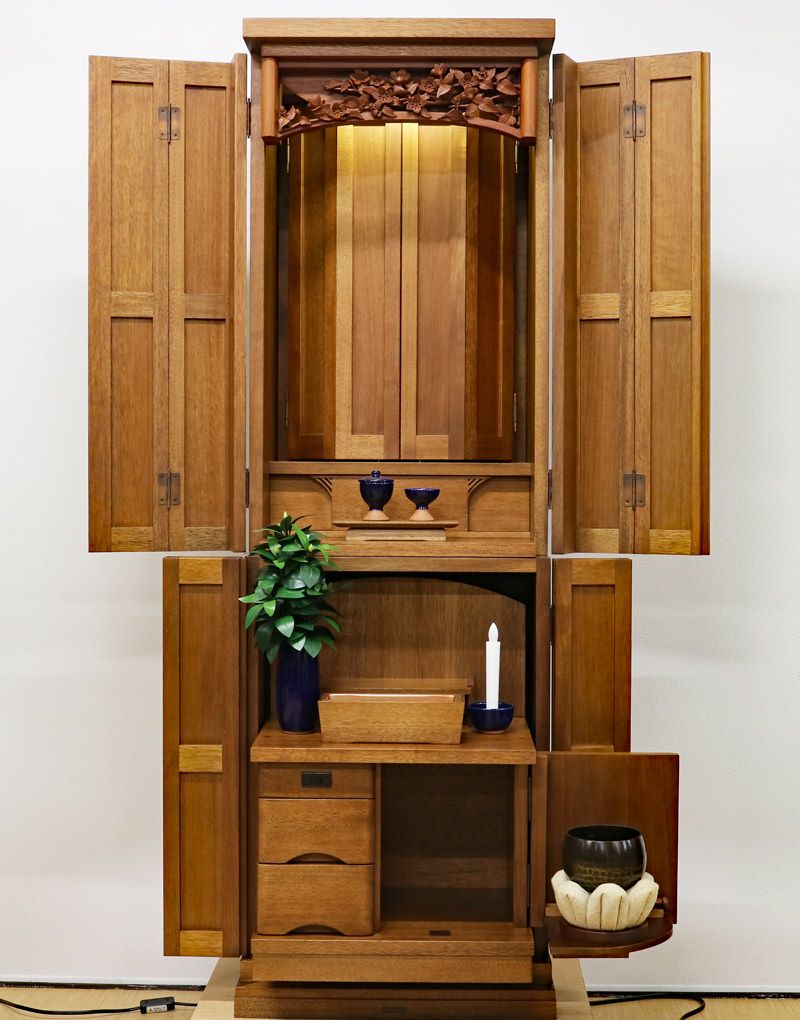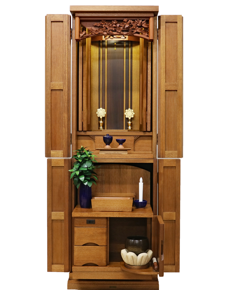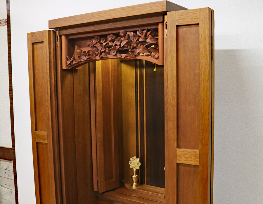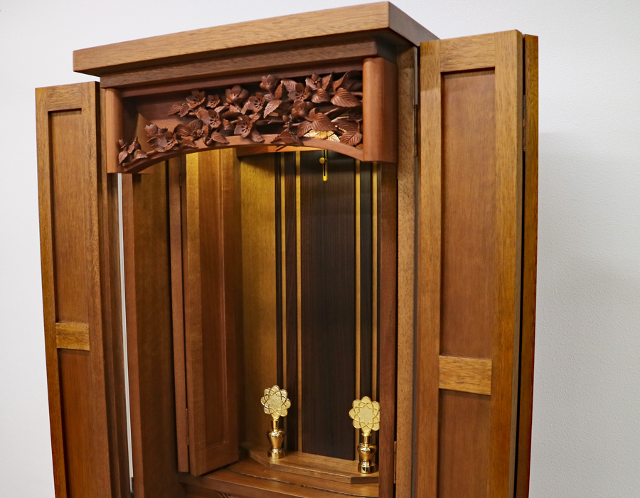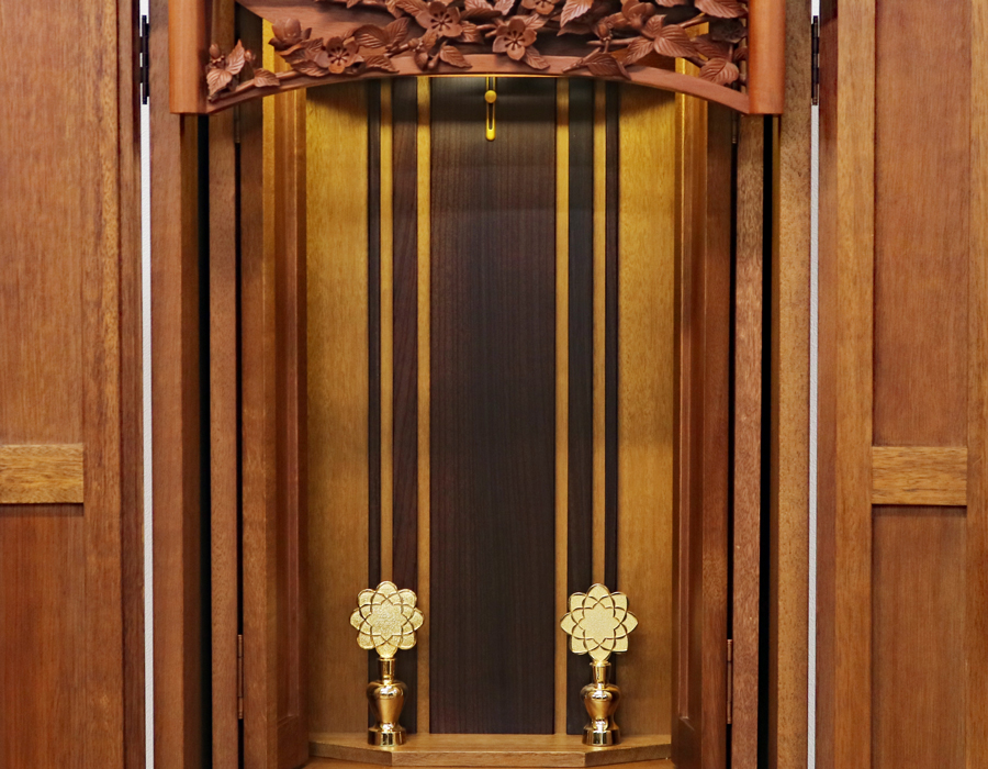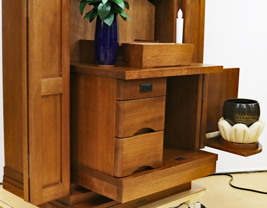 三方開きのお仏壇ですので斜めからでもご本尊様を拝すことができます。