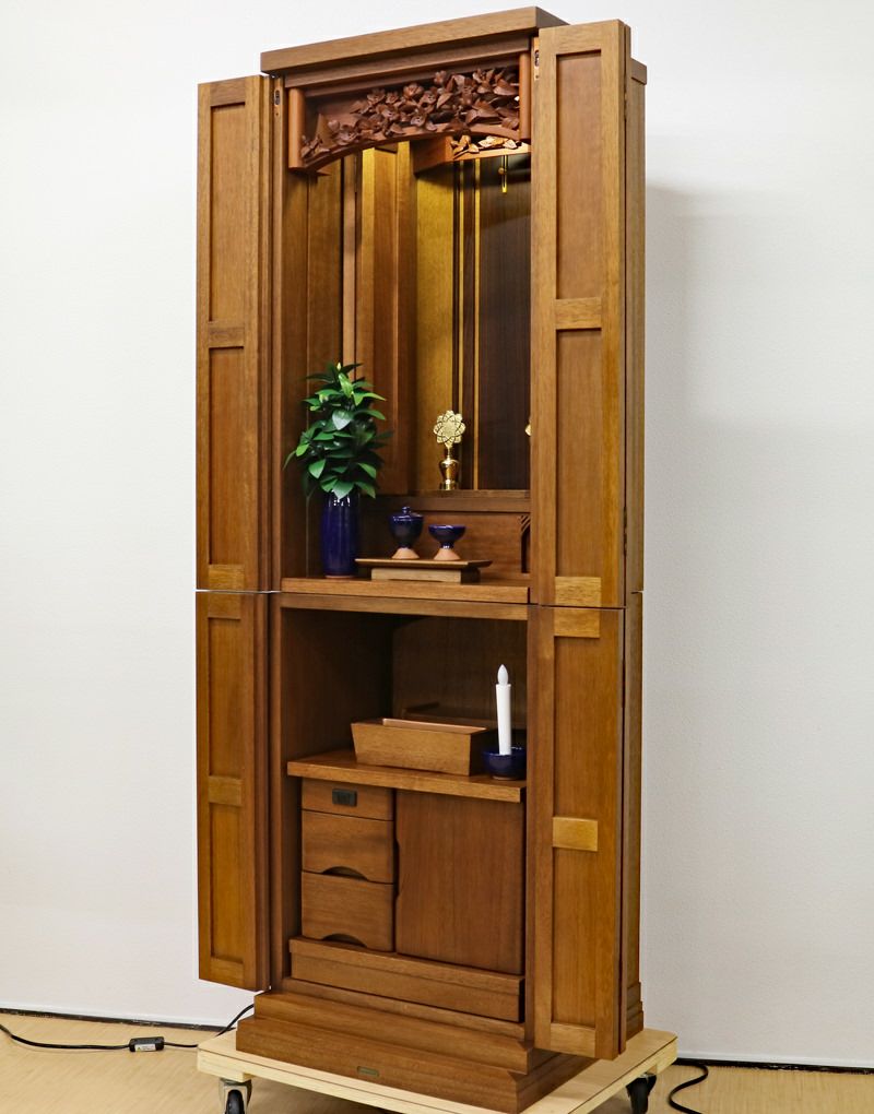 内部には蛍光灯照明も付属していますのでご本尊様を明るく照らしてくれます。