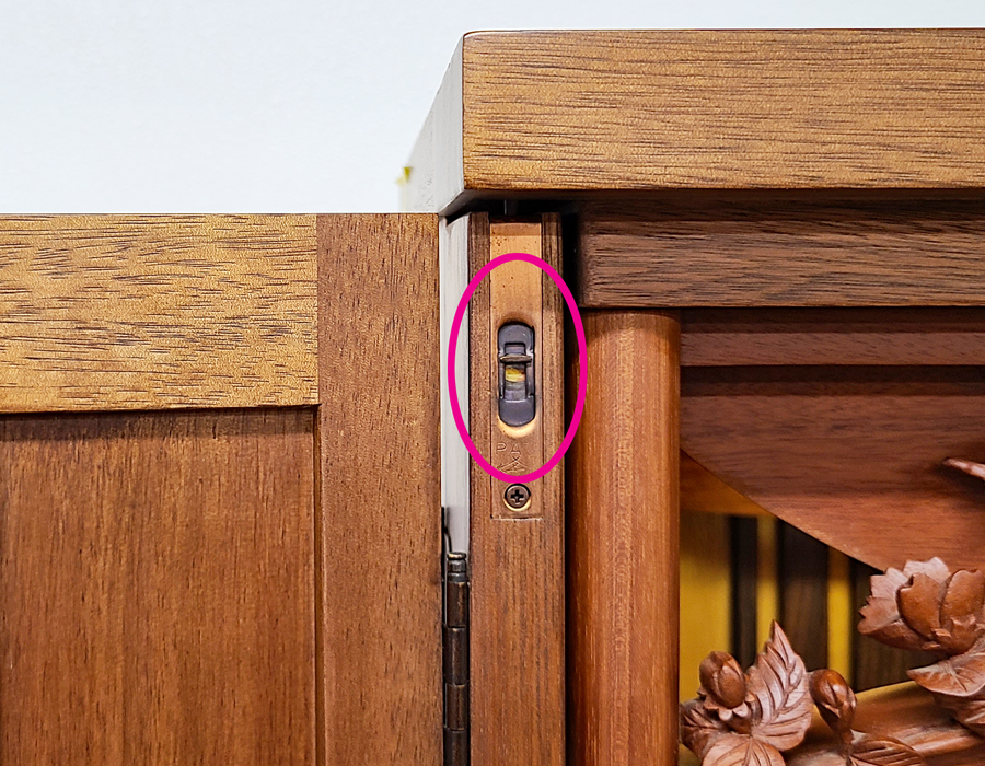 ご本尊様をご安置するための掛け金具は金具を回すことで上下に簡単に高さ調整することができます。
