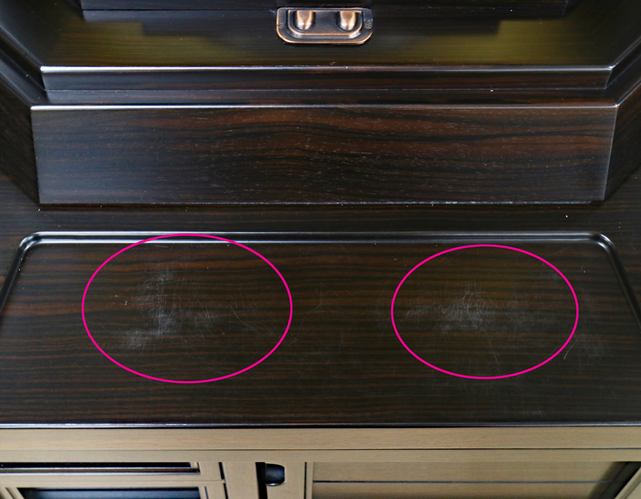 下台の上部に上記お写真の仏具による擦り傷がございます。