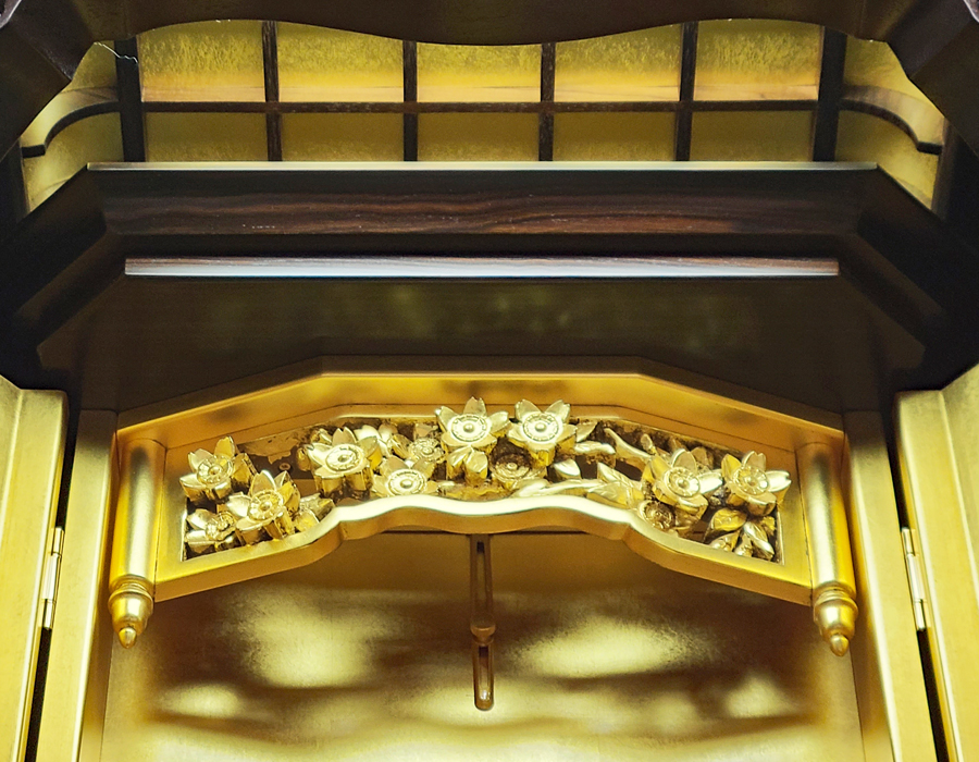 お厨子を開くと美しく本金箔を施した厨子板がご本尊様をさらに荘厳にしてくれます。