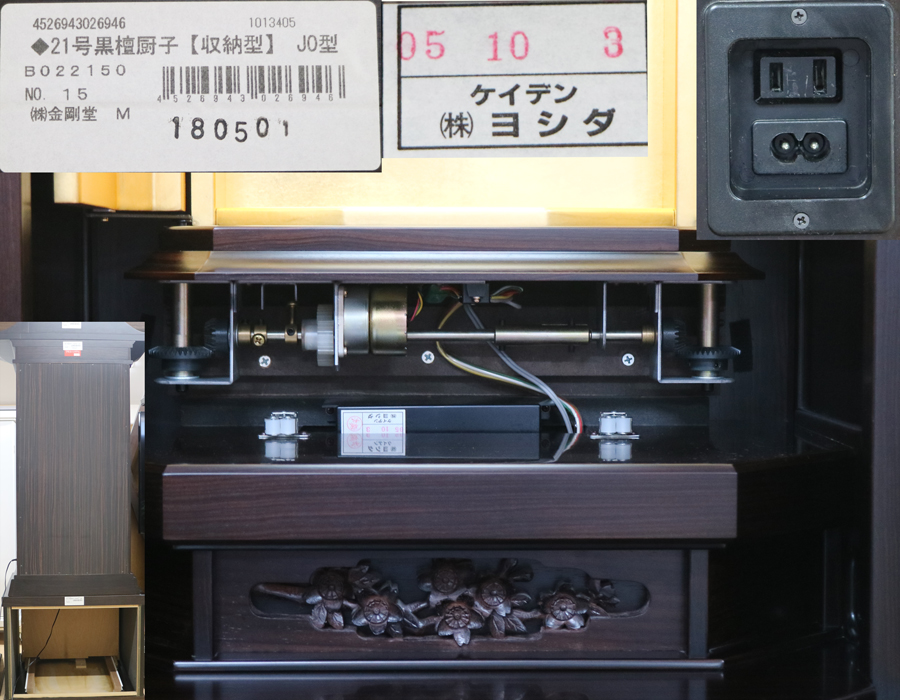 仏壇内上部には蛍光灯10w照明が設置されております。