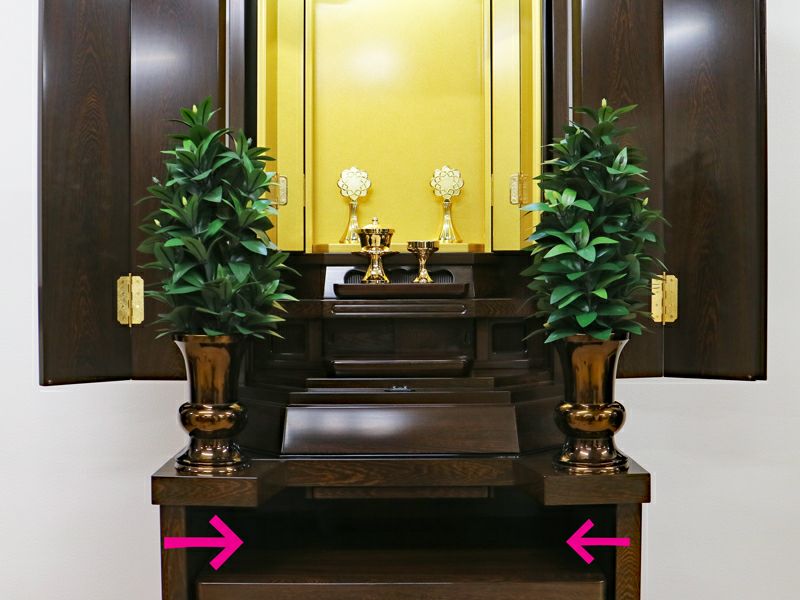 鉄刀木の美しい木目が生きた、上質な仕上がりの仏壇となっております。