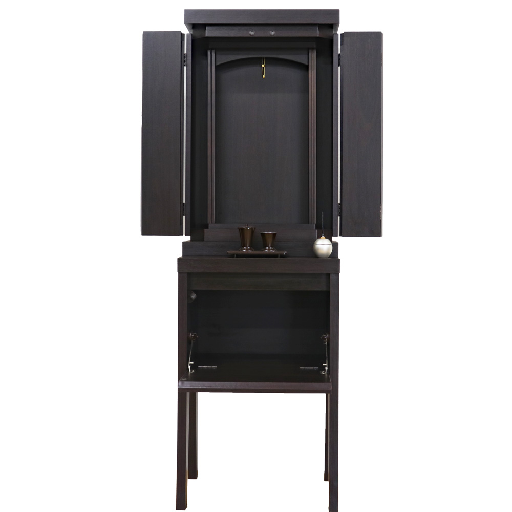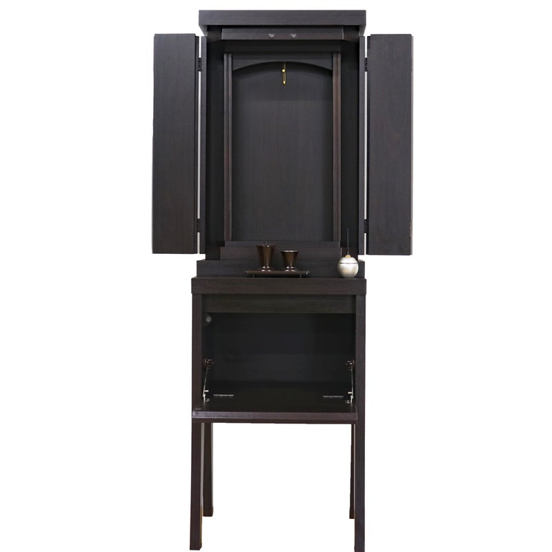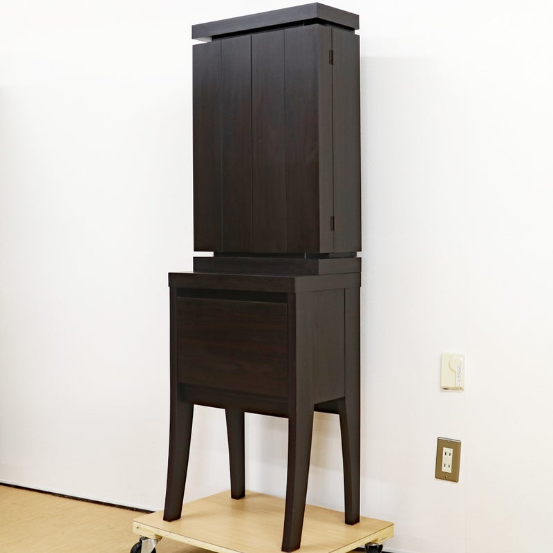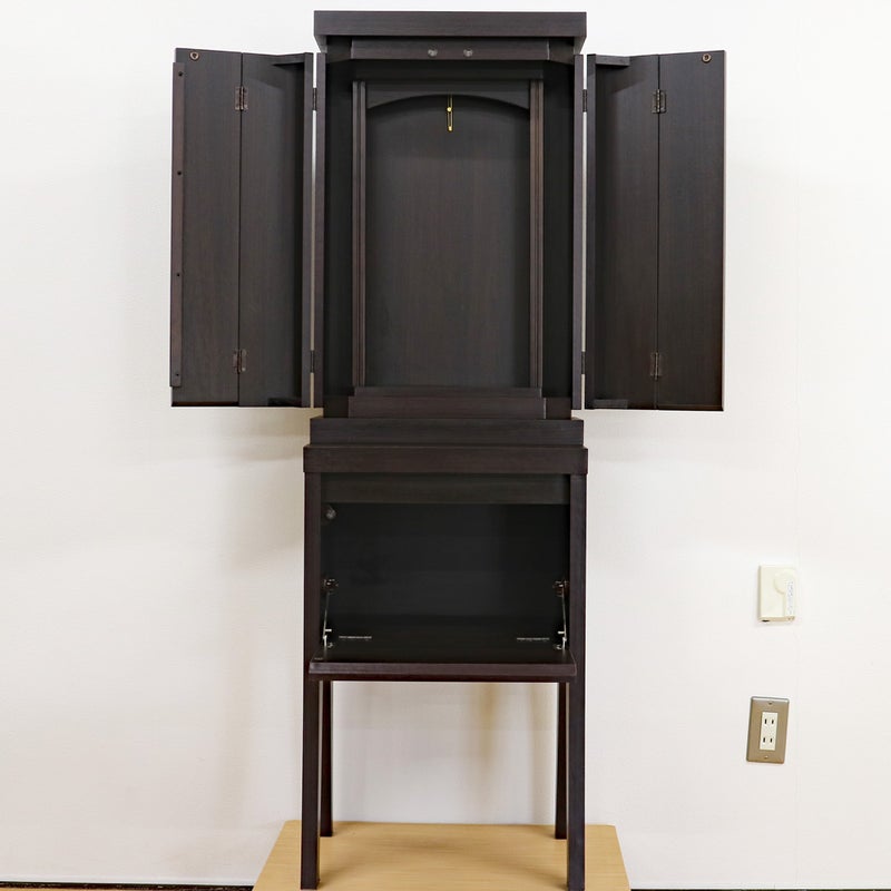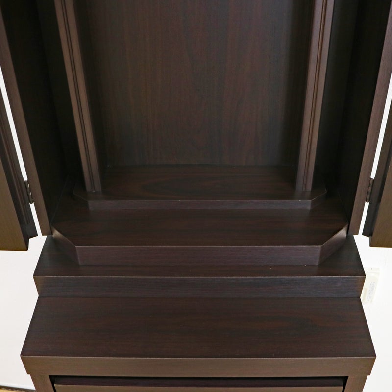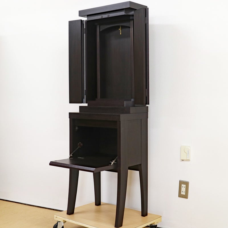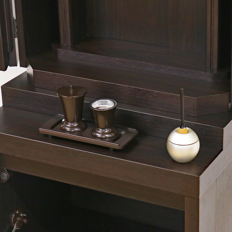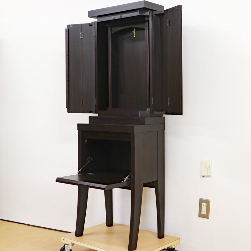 椅子に座って勤行するのにジャストな高さに設計されており、お厨子の奥の板まで統一された色味が、一体感のある美しい祈りの空間を生み出します。