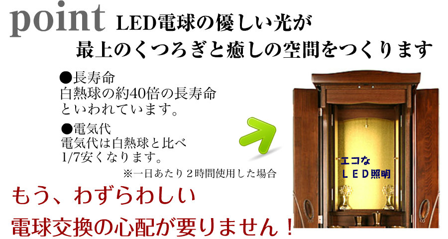 内部には蛍光灯照明も付属していますのでご本尊様を明るく照らしてくれます。 また上部には、八葉マーク付きです!