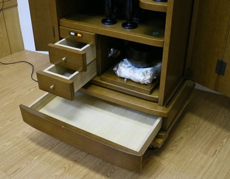 自動扉・引き出し3箇所(厨子下一個、下部引き出し二個)、収納経机