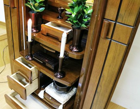 自動扉・引き出し2箇所、収納経机、収納リン台