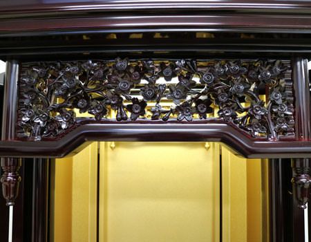 桜の彫刻の入った厨子型仏壇です。女子部・婦人部にも大人気の商品です。