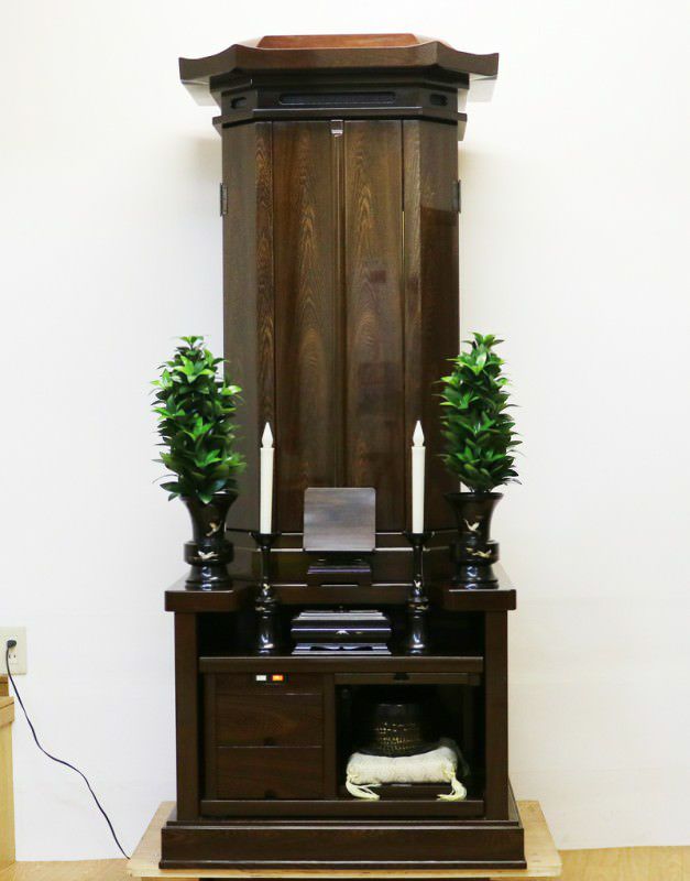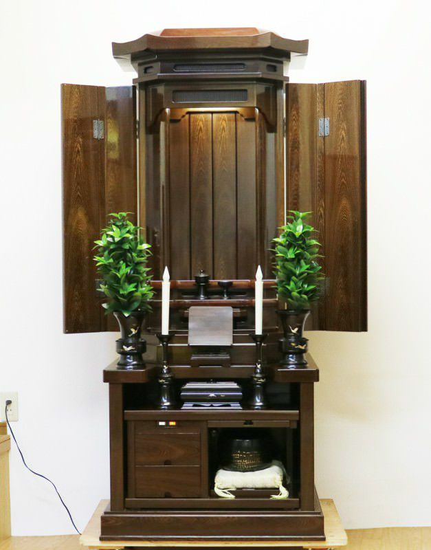 厨子型収納仏壇595です。鉄刀木の艶有塗装のお仏壇です。和室拠点におすすめのお仏壇です。