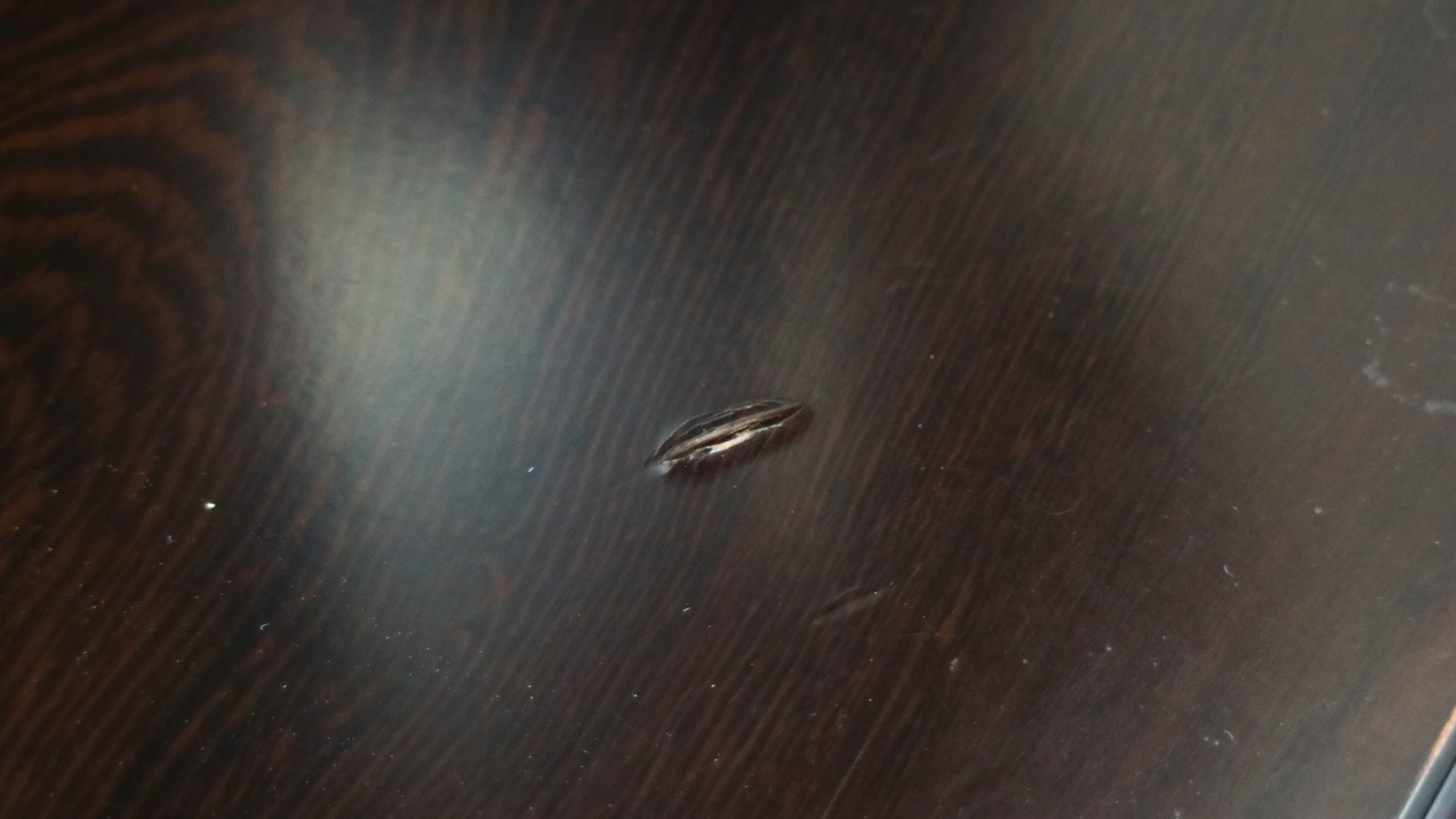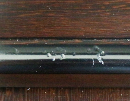 ↑仏壇向かって左側面にある傷です。右の写真を拡大すると左の写真のような傷となります。