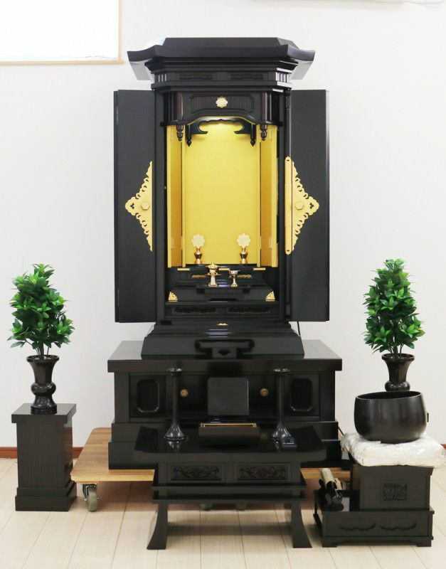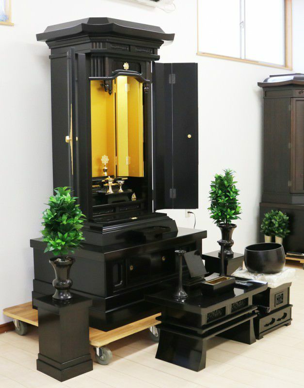 黒檀貼り・MDF・厨子内金色艶有塗装