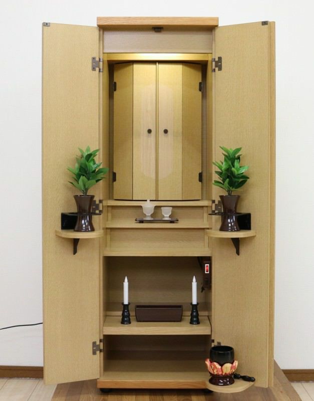 明るいチーク色のの電動家具調仏壇です。どの部屋にも自然となじむお色です。
